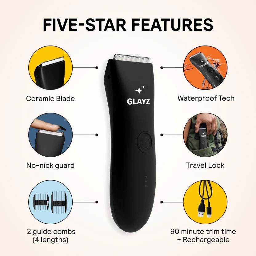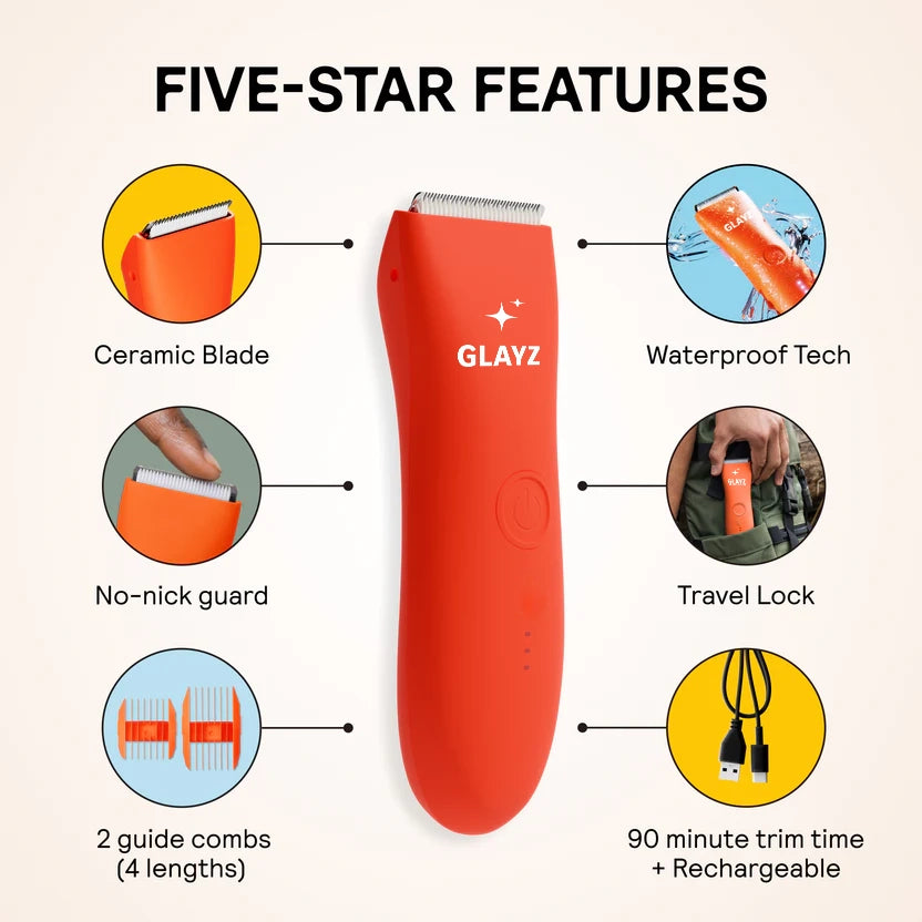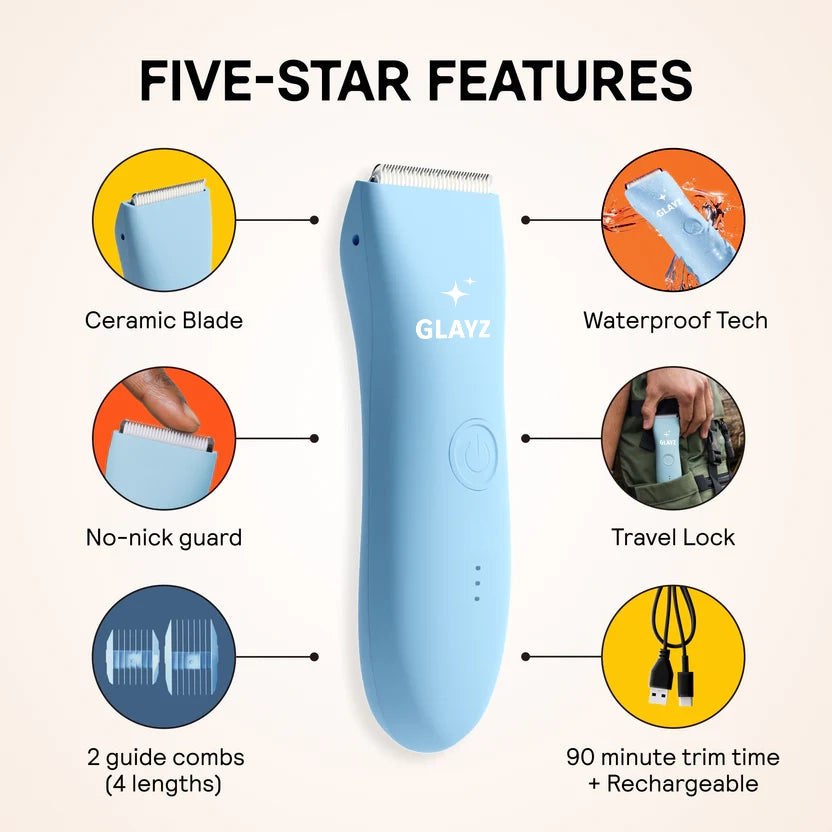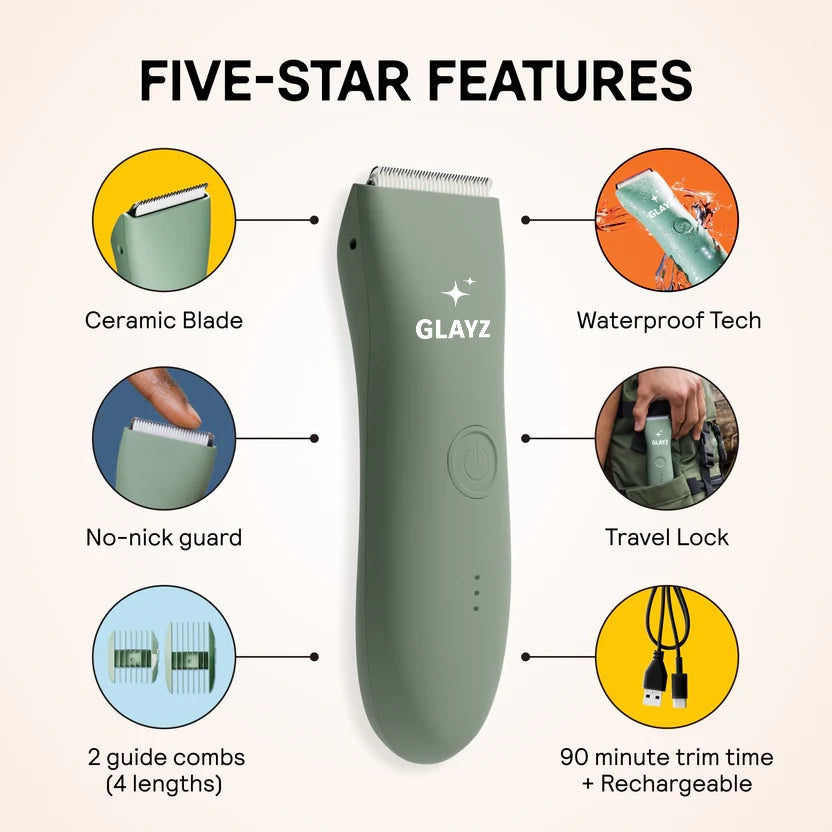 Este un trimmer complet, potrivit pentru bărbați, femei — pentru toată lumea! Glayz Trimmer poate fi folosit pentru axile, față, picioare, zona intimă, barbă și orice altă zonă intermediară.
